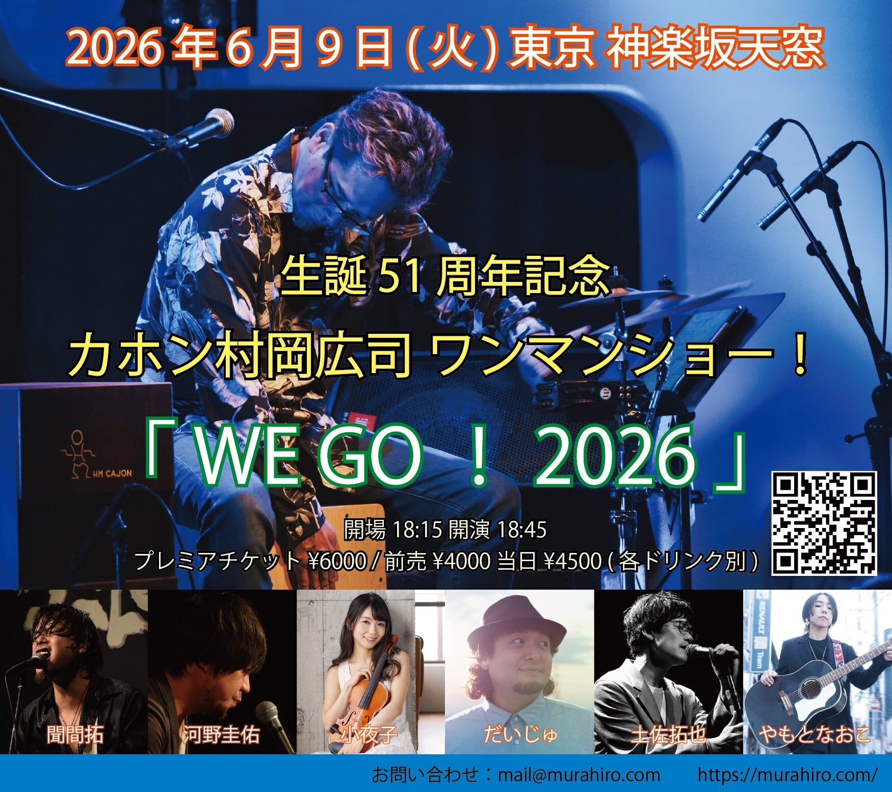【チケット】6/9(火)カホン村岡広司ワンマンショー!「WE GO! 2026」